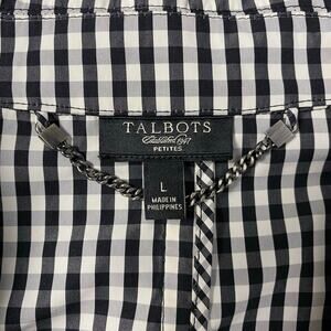 -Talbots Petites Tie Front Gingham Jacket Womens Size L Black White Minimalist
