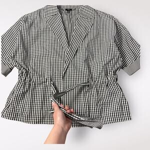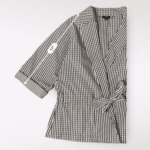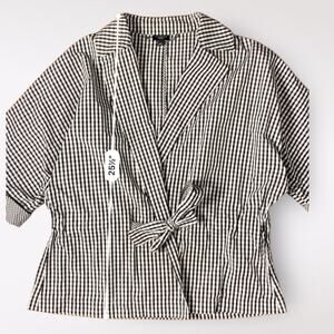 Talbots Petites Tie Front Gingham Jacket Womens Size L Black White Minimalist