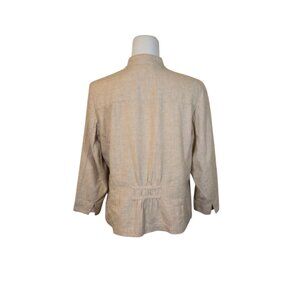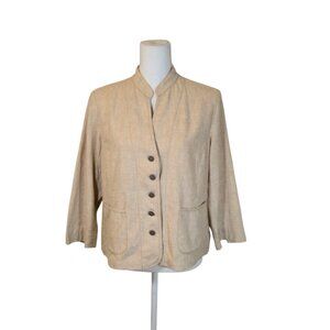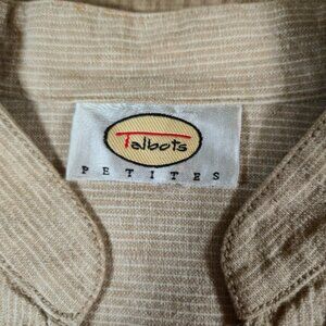 Talbots Petites VTG Linen Striped Jacket Size MP Tan Neutral Lagenlook Preppy