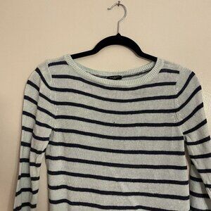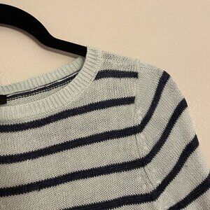 Talbots Petites Women SZ SP Blue Striped 3/4 Sleeve 100% Linen Knit Sweater