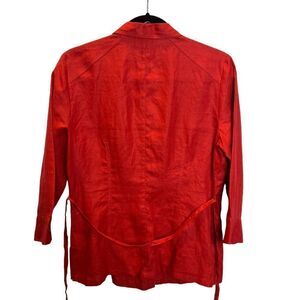 Top - Pit to pit 19 1/2" Length 25" Sleeve 18 1/2" Button Up, 3/4 Sleeve with button. Lapel collar. side slits. Thin Belt.