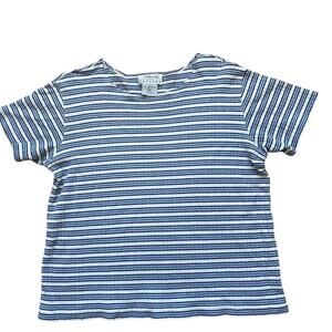 Talbots Petites Women’s Medium Blue & White Striped 100% Cotton Short Sleeve Top