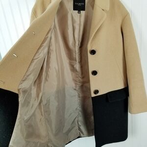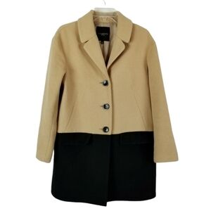 Talbots Petites Womens Size 10P Wool Blend Over Coat Color Block Black Beige