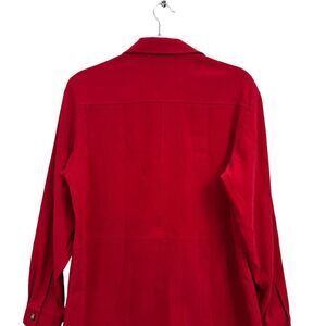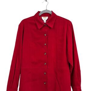 Talbots Petites Womens Velvet Shirt Top Button Up Collared Long Sleeves Red Sz M