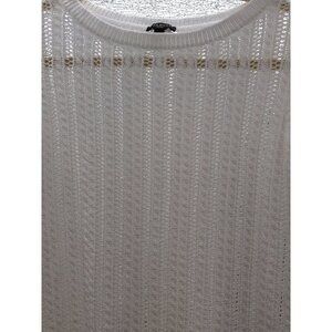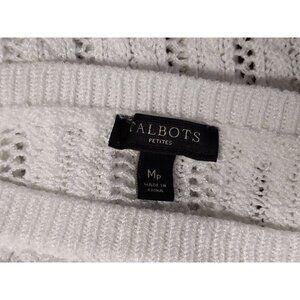 Talbots Petites Women's White Linen blend sweater open knit 3/4 sleeve size MP