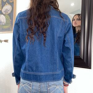 This denim jacket is perfect for any occasion! It is made from 100% cotton for breathability and comfort. The classic blue hue of this jacket will add a timeless touch to any look. It features a collared neckline, long sleeves. This jacket is sure to keep you warm and stylish all season long!