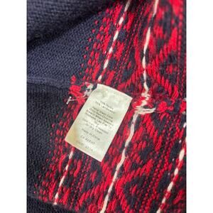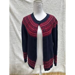 Talbots Petites Wool Fair Isle Cardigan Sweater Navy Red MP Nordic Winter Knit