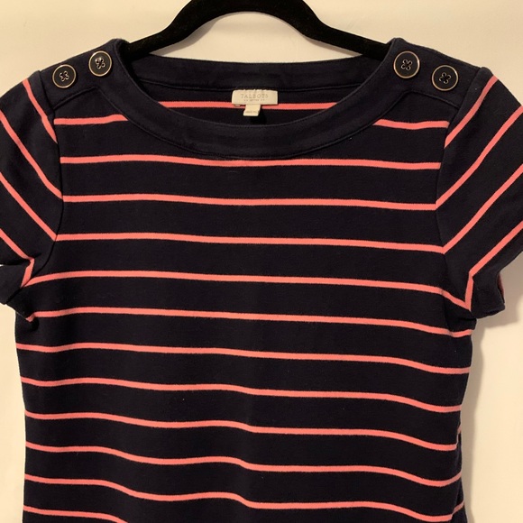 Beautiful navy with pink horizontal stripes. Oversized deco buttons on the shoulders. Size SP