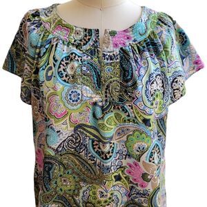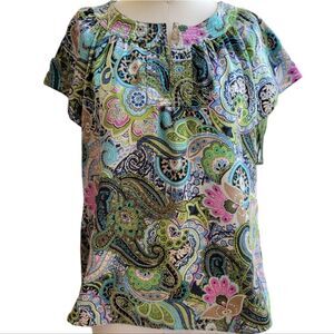 Talbots Petites satin paisley top, cap sleeves