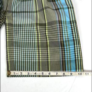 Talbot's Petites Size 10PM, cropped silk pants . Gorgeous green blue and brown plaid pattern. 54% silk, 46% cotton. Pants are fully lined in 100% polyester. Three buttons on each side of pant . Darts at waist front and back. Size 12P, Waist is 16 inches, rise 11,5 inches, Inseam 22 inches, open legs 10,5 inches. Please see all photos with measurements. Gently used in very good condition. B6
