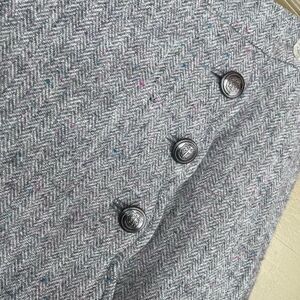 Talbots Petites Herringbone Wool Blend Skirt Gray Faux Wrap Scallop