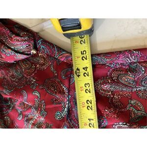 Talbots Petites Red Ruffle Paisley Blouse Top Sz 2XP Satin