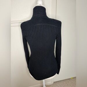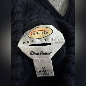 Talbots Pima Cotton Ribbed Mock Neck Petite S Blue Sweater Cardigan