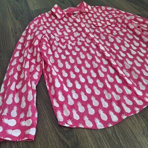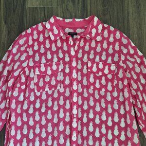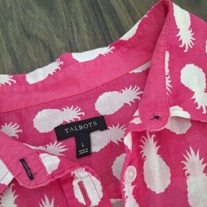 Talbots Pineapple Pink 100% Cotton Lightweight Button UP Shirt Preppy Tropical Feminine.