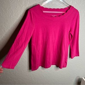 Talbots Pink 3 Quarter Inch Sleeve Top W/Scallop Neck Line