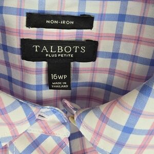 Talbots Pink And Blue Long Sleeve Classic Checkered Button Down Shirt Sz 16WP