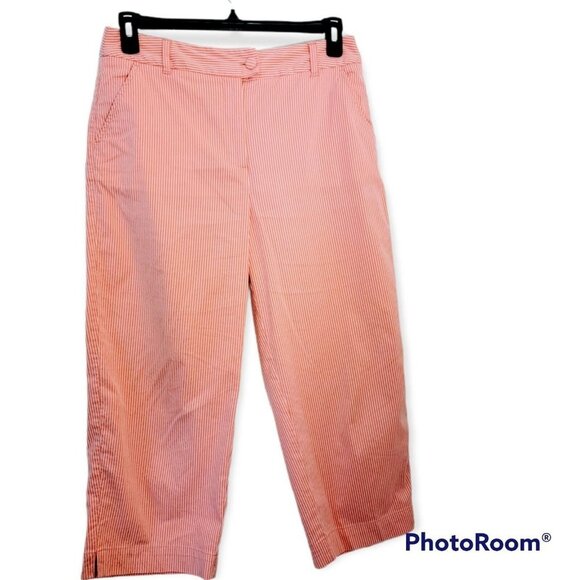 Talbots Pink And White Striped Stretch Cropped Pants Size 10.