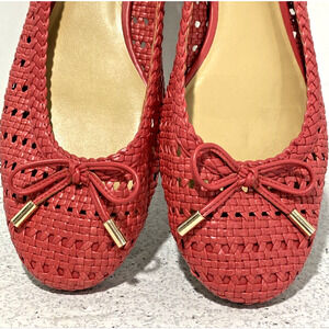 Talbots Pink Ballet Flats Woven Faux Leather Casual Shoes Bow Details US 7.5M