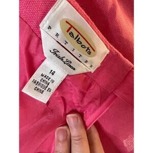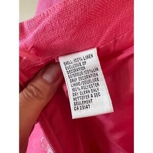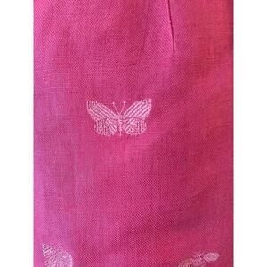 This Talbots skirt features a charming butterfly embroidery on a pink linen fabric, creating an elegant yet playful look. Perfect for both casual and formal occasions, its linen material ensures comfort and style.
