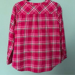 This relaxed pink blouse from Talbots features a button-down design and a chic mandarin collar. Its soft fabric and comfortable fit make it a versatile addition to any wardrobe.