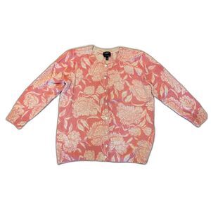 Talbots cashmere sweater, floral cardigan, cashmere cardigan, lightweight sweater, pink cashmere cardigan, feminine cardigan, retro cardigan