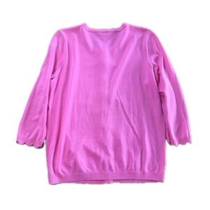 Talbots Pink Cotton Blend Preppy 3/4 Sleeves Button Front Scalloped Cardigan