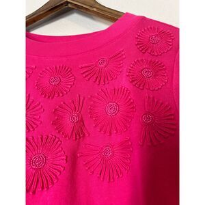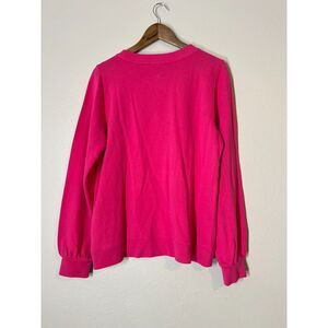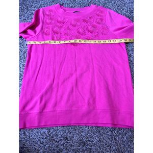 Vibrant pink sweatshirt with floral embroidery. Long sleeves. Comfortable and stylish.
