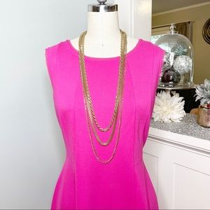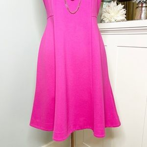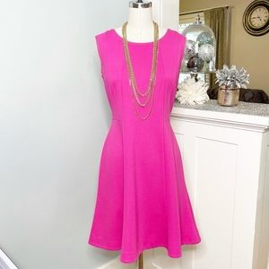 Talbots Summer Sleeveless Hot Pink Fit and Flare Dress Casual Career Office Date Night Out Cocktail Party Special Event Formal Wedding Guest