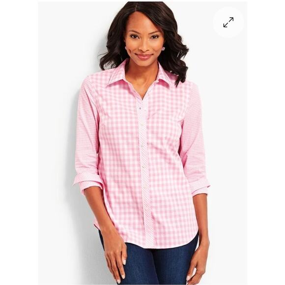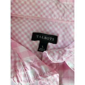 Talbots Pink Gingham Classic Casual Collar Button Front Shirt Women's Size Large