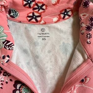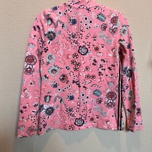 This Talbots top features a vibrant pink hue with a graphic design, offering a fitted silhouette and long sleeves for a chic and comfortable look. The polo collar adds a touch of classic style, making it a versatile piece for both casual and dressier occasions.