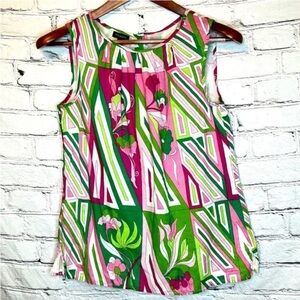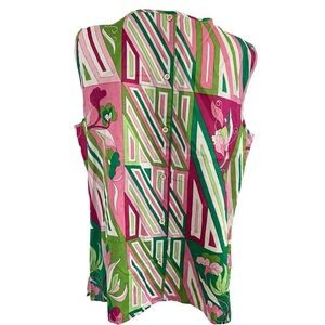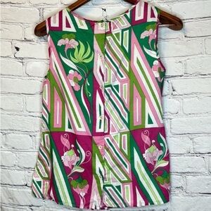 Talbots Pink Green Button Back Sleeveless Blouse Size 14 Lightweight Spring
