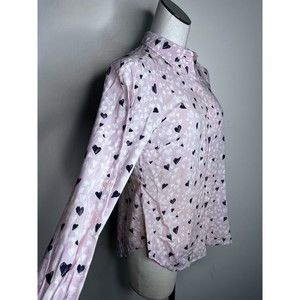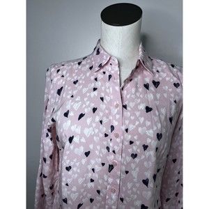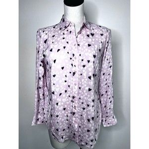 Talbots Pink Hearts Button Down Shirt Size Small Petite