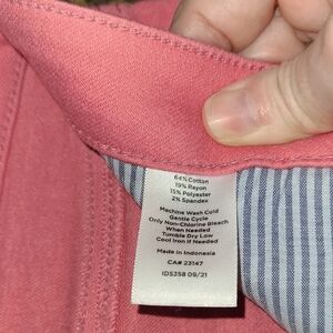 Previously owned and gently worn. Stylish pink jeggings from Talbots. Plenty of stretch! Comfortable fit. Perfect for casual wear. Front and back pockets. Button closure. 25" Inseam 9: rise