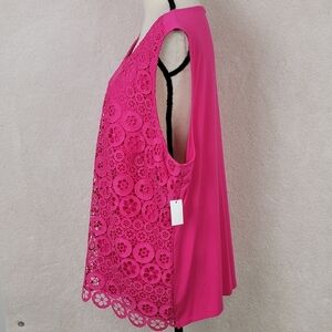 Talbots Pink Lace Embroidered Sun Pattern Trim Knit Shell Top Sz 2x Plus NEW