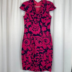 Talbots Pink & Navy Blue Floral Linen Capped Sleeve Dress Size 4