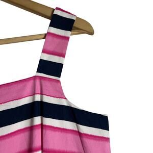 Talbots Pink Navy White Striped Square Neck Pleated Sleeveless Dress Size 4