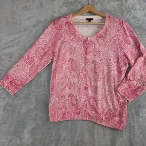 Talbots Pink Paisley Floral Button-Front Cardigan, Size Large