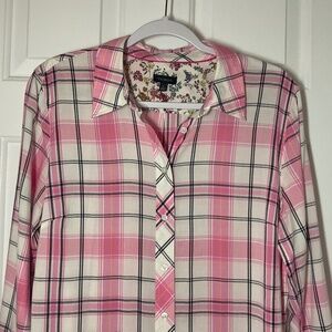 Talbots Pink Plaid Button Down Shirt