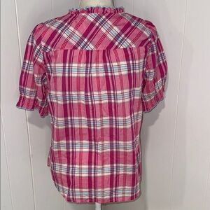 Talbots Pink Plaid Ruffle Blouse