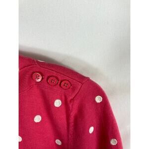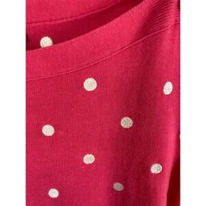 Talbots Pink Polka Dot Knit Top pink with white embroidered dots and button detail on shoulder 3/4 sleeve great shape