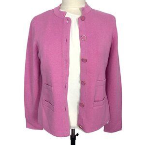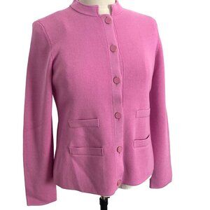 Talbots Pink Ponte Knit Jacket Womens Small Gold Rim Buttons Classic Preppy