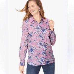 Talbots Pink Purple Floral Swiss Dot 100% Cotton Blouse size M