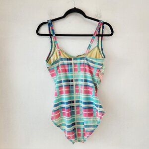 Talbots Pink Teal Geometric One-Piece Swimsuit Bathing Suit Slimming Size 12