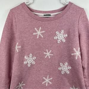 Talbots Pink White Embroidery Snowflake Applique Pullover Sweatshirt Size MP