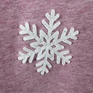 Heathered pink with white embroidered and applique snowflakes on front / shows darker in pics due to lighting