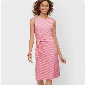 Talbots Pink & White Stripe Dress 1X Petite Side Knot Cool Comfort Beachy
