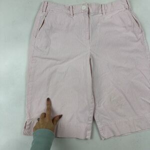 Talbots Pink White Striped Bermuda Shorts 10 Cotton Spandex High Waist Stretch