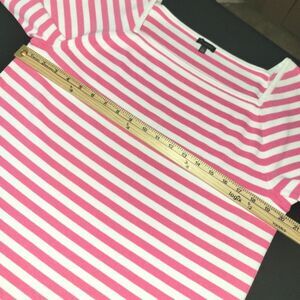 Item: women's short sleeve boat neck top, pink and white striped, heavier weight stretch material, size XL