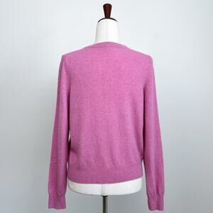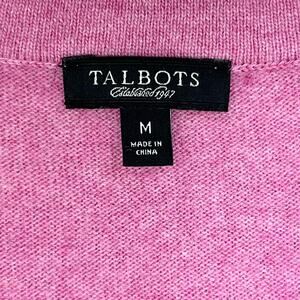 Size Medium Talbots Cardigan. Soft wool bland knit fabric in a pretty pink colorway. V-neck with a button-up front. Slightly cropped length. Great condition!
