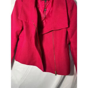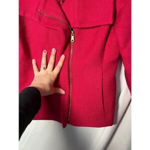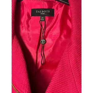 Talbots pink wool blend blazer. Has a moto zip and a collar. Size 4P new without tags.